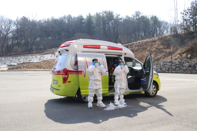 Àü³²¼Ò¹æÀº ´ë±¸¿¡ ÆÄ°ßµÈ 119±¸±Þ´ë°¡ ÇöÀç±îÁö ÀÚ°¡°Ý¸® ÁßÀÎ È®ÁøÀÚ 53¸íÀ» ÀÇ·á±â°üÀ¸·Î À̼ÛÇÑ °ÍÀ¸·Î ³ªÅ¸³µ´Ù.