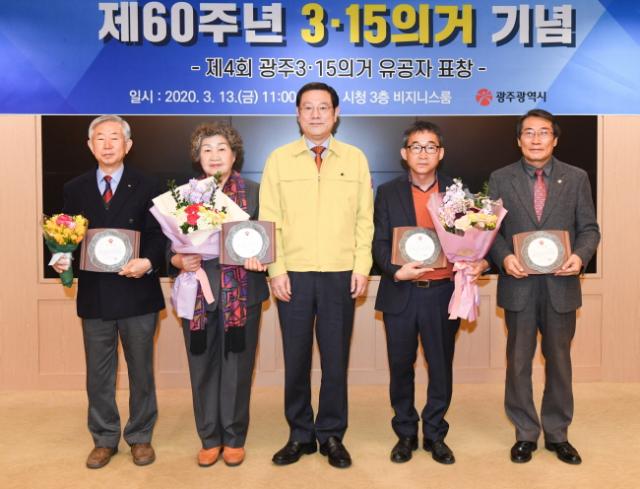 ÇÑÆí, ±¤Áֽô 3¡¤15ÀǰŠ60ÁÖ³âÀ» ¸Â¾Æ ´ç½Ã ¹ÎÁÖȿ¿¡ Çå½Å¡¤±â¿©ÇÑ ±è°æÃµ, ÀÌ»ó¿Á, ±è°æÀº, ¾ç½Â±¸ ¾¾ µî 4¸í¿¡ ´ëÇØ À¯°øÀÚ Ç¥Ã¢À» ¼ö¿©Çß´Ù.
