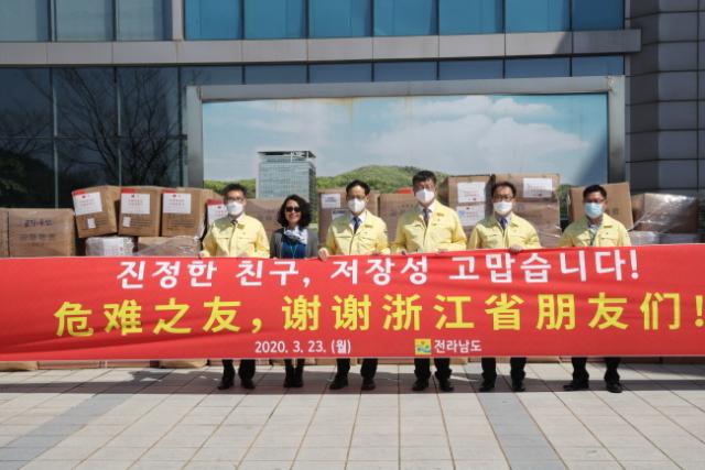 ÀÌ´Â Àü¶ó³²µµ°¡ ¡®Äڷγª19¡¯ È®»êÀ¸·Î ¾î·Á¿ü´ø Áö³ 2¿ù Áß±¹ 10°³ ÀÚ¸Å․¿ìÈ£Áö¿ª¿¡ Áö¿øÇß´ø ¸¶½ºÅ© ÃÑ 10¸¸Àå¿¡ ´ëÇÑ º¸´äÀÌ´Ù.