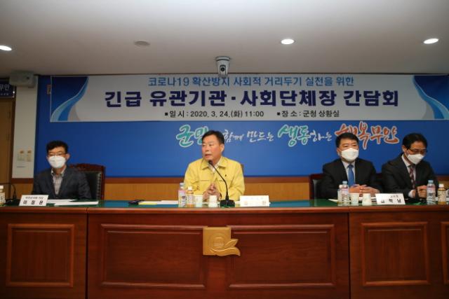 ¹«¾È±º¿¡ µû¸£¸é 24ÀÏ ±è »ê ±º¼ö, ÀÌÁ¤¿î ±ºÀÇÀåÀ» ºñ·ÔÇÑ °ø°ø±â°ü, ±³À°±â°ü, ±ÝÀ¶±â°ü µî °ü³» 24°³ ±â°ü¡¤»çȸ´ÜüÀå°ú °ø¹«¿ø µî 30¿©¸íÀÌ Âü¼®ÇÑ °¡¿îµ¥ ±ºÃ» »óȲ½Ç¿¡¼ Äڷγª19 È®»ê¹æÁö¸¦ À§ÇÑ »çȸÀû °Å¸®µÎ±â ½Çõ ±ä±Þ °£´ãȸ¸¦ °³ÃÖÇß´Ù°í ¹àÇû´Ù.