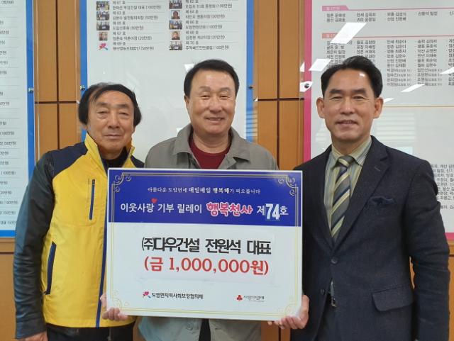 Áö³ 16ÀÏ¿¡´Â ÇÑ ÁÖ¹ÎÀÌ À͸íÀ» ¿äûÇϸç 100¸¸ ¿øÀ» ¼±¶æ ±âºÎÇÏ´Â µî º¸ÀÌÁö ¾Ê´Â ¼±Ç൵ À̾îÁö°í ÀÖ´Ù. 1004¸¸ ¿ø ¸ð±ÝÀ» ¸ñÇ¥·Î ÀÛ³â 1¿ùºÎÅÍ ½ÃÀÛµÈ µµ¾Ï¸é ÀÌ¿ô»ç¶û Çູõ»ç ±âºÎ ¸±·¹ÀÌ´Â µµ¾Ï¸éÁö¿ª¹ßÀüÇùÀÇȸ°¡ 1È£·Î Âü¿©ÇÑ °ÍÀ» ½ÃÀÛÀ¸·Î µÎ ´Þ ¸¸¿¡ ¸ñÇ¥¾×À» Ãʰú ´Þ¼ºÇÑ ¹Ù ÀÖ´Ù. ÀÛ³â ÇÑ ÇØ µ¿¾È¸¸ ¸ðµÎ 3õ4¹é¸¸ ¿øÀÌ ³Ñ´Â ±Ý¾×ÀÌ ¸ð¿´À¸¸ç ¿ÃÇØµµ 3°³¿ùÀ̶ó´Â ªÀº ±â°£ µ¿¾È ¸ð±Ý¾×ÀÌ 1õ5¹é¸¸ ¿øÀ» ³Ñ¾î¼°í ÀÖ´Ù.