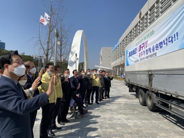 »ý¸í°ú »ç¶ûÀÇ »ý¼ö º¸³»±â Çà»ç¿¡´Â À̿뼷 ±¤ÁÖ½ÃÀå°ú ±èµ¿Âù ½ÃÀÇȸÀÇÀå, ´ÜüÀÓ¿ø µîÀÌ ÀÚ¸®¸¦ ÇÔ²²ÇØ ´ë±¸ ´Þ±¸¹ú ½Ã¹ÎµéÀÇ Äڷγª19 Á¶±â ±Øº¹À» ¿°¿øÇÏ´Â ¸¶À½À» ÇÔ²² Çß´Ù.