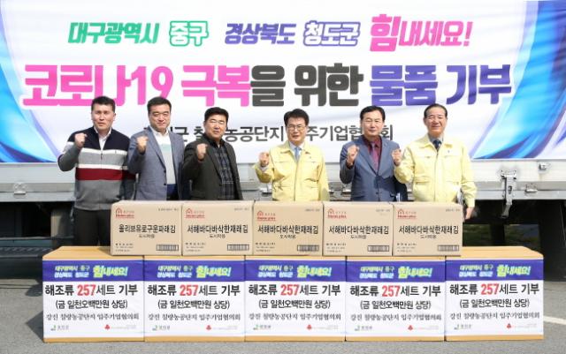 ³ª»ý¼® Ä¥·®³ó°ø´ÜÁö ÀÔÁÖ±â¾÷ÇùÀÇȸÀåÀº ¡°±¹°¡Àû Àç³ »çÅ·Π¾î·Á¿òÀ» °Þ°í ÀÖ´Â ´ë±¸±¤¿ª½Ã Áß±¸¡¤°æºÏ ûµµ±º¿¡ Áö¿ª¹Î¿¡°Ô ÀÛ°Ô³ª¸¶ µµ¿òÀÌ µÇ°íÀÚ ¿ì¸® ³ó°ø´ÜÁö¿¡¼ »ý»êÇÑ Á¦Ç°À» Àü´ÞÇÏ°Ô µÆ´Ù¡±¶ó¸ç ¡°Äڷγª19°¡ À̸¥ ½ÃÀÏ ³»¿¡ Á¾½ÄµÇ¾î ¸ðµç ±¹¹ÎÀÌ ÇູÇÏ°í °Ç°ÇÑ ÀÏ»ó»ýȰÀ» µÇã±â ¹Ù¶õ´Ù¡±°í ¸»Çß´Ù