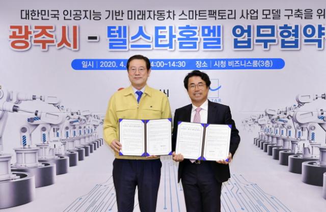 ±¤ÁÖ½Ã¿Í ÅÚ½ºÅ¸¡©È¨¸áÀº 7ÀÏ ½Ãû ºñÁî´Ï½º·ë¿¡¼ ¾÷¹«Çù¾àÀ» ü°áÇÏ°í ±¤ÁÖ¿¡ ÀΰøÁö´É¿¬±¸¼Ò¿Í »ý»ê°øÀå ¼³¸³¡¤¿î¿µ ¹× ÀΰøÁö´É ±â¹Ý ¹Ì·¡ÀÚµ¿Â÷ ½º¸¶Æ®ÆÑÅ丮 »ç¾÷ ¸ðµ¨ ±¸Ãà¿¡ Çù·ÂŰ·Î Çß´Ù.