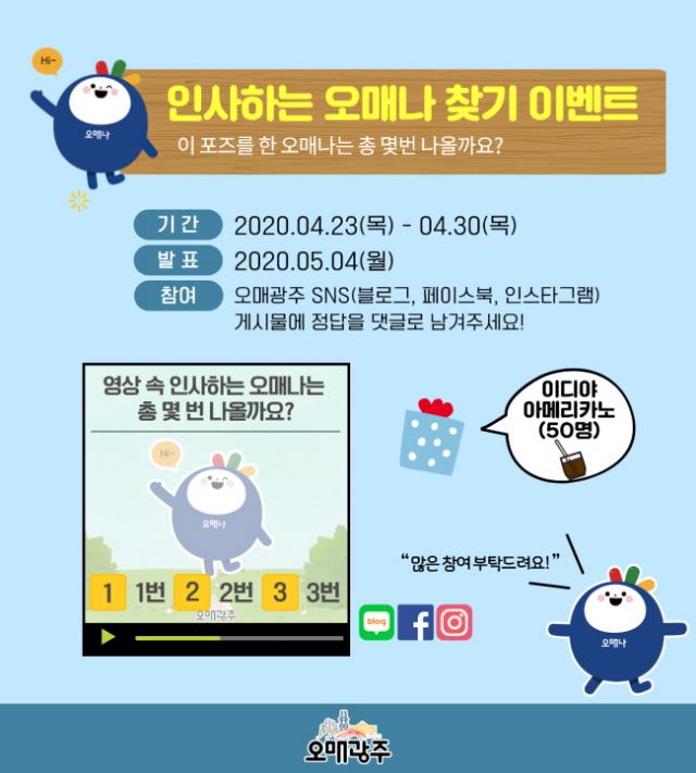 ±¤Áֽô 5¿ù 4ÀÏ ¿À¸Å±¤ÁÖ °ø½Ä ¼Ò¼È³×Æ®¿öÅ©¼ºñ½º(SNS) ä³ÎÀ» ÅëÇØ À̺¥Æ® °á°ú¸¦ ¹ßÇ¥ÇÒ ¿¹Á¤À̸ç, ´ç÷ÀÚ 50¸í¿¡°Ô´Â Ä¿ÇÇ ÄíÆùÀ» ÁõÁ¤ÇÑ´Ù. ¶Ç 5¿ù Áß¿¡ ¿À¸Å³ª ÀÎÇüÅ»À» ½Ã¿¬ÇÒ ¹è¿ì¿Í ½ºÅ丮¸¦ © ÀÛ°¡¸¦ °ø°³ ¿Àµð¼ÇÀ» ÅëÇØ ¼±¹ßÇÑ´Ù. ¿À¸Å³ª ij¸¯ÅÍ ÀÎÇüÅ»Àº Äڷγª19 »çŰ¡ ÁøÁ¤µÇ¸é Àü±¹ °÷°÷À» µ¹¾Æ´Ù´Ï¸ç ±¤ÁÖ¸¦ ¾Ë¸®´Â ¿ªÇÒÀ» ÇÏ°Ô µÈ´Ù. ´õºÒ¾î ÀÌ °°Àº Ȱµ¿À» ´ãÀº µ¿¿µ»óÀ» À¯Æ©ºê µîÀ» ÅëÇØ ¼±º¸ÀÏ ¿¹Á¤ÀÌ´Ù.