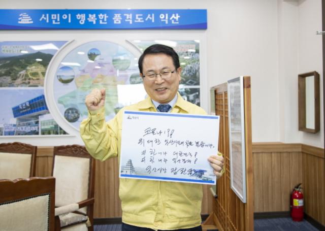 Á¤ÇåÀ² ÀÍ»ê½ÃÀåÀº Äڷγª19 À§±â¸¦ À̰ܳ»±â À§ÇØ Çϳª·Î °áÁýµÈ ÀÍ»ê ½Ã¹Îµé¿¡ °¨»çÇÑ ¸¶À½À» ´ã¾Æ ¡°Äڷγª19! À§´ëÇÑ ÀÍ»ê½Ã¹ÎÀÇ ÈûÀ» ¹Ï½À´Ï´Ù. Èû³»¶ó ´ëÇѹα¹! Èû³»¶ó ÀÍ»ê°æÁ¦!¡±¸¦ ¼Õ±Û¾¾·Î ÀüÇϸç Äڷγª19 Á¾½ÄÀ» ¿°¿øÇß´Ù.