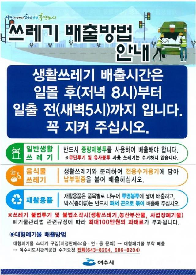 ÀÌ¿¡ ½Ã´Â ¾²·¹±â ¹èÃâ½Ã°£, ÀçȰ¿ëǰ ºÐ¸®¹èÃâ ¹æ¹ý, ¾²·¹±â ¹«´ÜÅõ±â ½Ã °úÅÂ·á ºÎ°ú µî ¿Ã¹Ù¸¥ ¾²·¹±â ¹èÃâ¹æ¹ý¿¡ ´ëÇÑ È«º¸¹°À» Á¦ÀÛÇØ ºÒ¹ýÅõ±â °¨½Ã¿ø°ú À¾¸éµ¿À» ÅëÇØ È«º¸¸¦ ½Ç½ÃÇϰí ÀÖ´Ù.