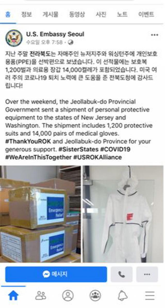¾Õ¼± Áö³ 4¿ù, ÀüºÏµµ´Â ¹Ì±¹ ³» Äڷγª19 °¨¿°º´ ±ÞÁõÀ¸·Î ¼¼°è ÃÖ´Ù È®ÁøÀÚ ¹× »ç¸ÁÀÚ°¡ ¹ß»ýÇÔ¿¡ µû¶ó ÀڸŰῬÁö¿ª 2°÷¿¡ À§·Î ¼Çѹ®°ú ¹æ¿ªº¸È£º¹ 1,200¹ú ¹× ÀÇ·á¿ë Àå°© 14,000ÄÓ·¹¸¦ ½Å¼ÓÈ÷ Àü´ÞÇß´Ù.