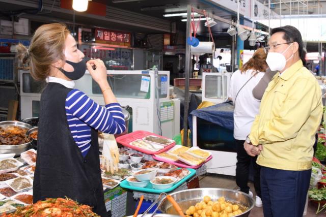 ¿©¼ö½Ã¿¡ µû¸£¸é Áö³ 22ÀÏ ±Ç¿ÀºÀ ¿©¼ö½ÃÀåÀ» ºñ·ÔÇÑ °ü°è °ø¹«¿øµéÀÌ ¿©¼ö Áø³²‧Á¦ÀÏ‧½ÖºÀ½ÃÀåÀ» ¹æ¹®ÇØ ¸Ô°Å¸®¿Í »ýÇÊǰ µîÀ» ±¸ÀÔÇÏ¸ç ¾î·Á¿òÀ» °Þ°í ÀÖ´Â »óÀεéÀ» °Ý·Á Çß´Ù°í ¹àÇû´Ù.