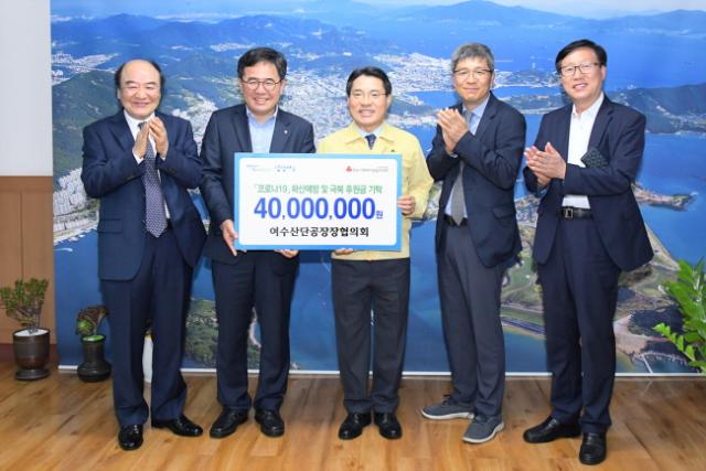 ¿©¼ö½Ã¿¡ µû¸£¸é Áö³ 29ÀÏ ¿ÀÈÄ ¿©¼ö»ê´Ü°øÀåÀåÇùÀÇȸ ¹ÚÇöö ȸÀåÀÌ ½ÃÀå½ÇÀ» ¹æ¹®ÇØ ±Ç¿ÀºÀ ¿©¼ö½ÃÀå¿¡°Ô 4000¸¸ ¿øÀÇ ÈÄ¿øÁõ¼¸¦ Àü´ÞÇß´Ù°í ¹àÇû´Ù.