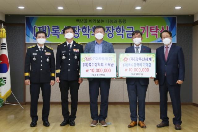 ÀåÇбâ±Ý ±âŹ½Ä¿¡¼ ±â¾ÆÀÚµ¿Â÷ ±¤ÁÖ°øÀå°ú ±¤Áֽż¼°è¹éÈÁ¡¿¡¼ °¢°¢ 1000¸¸¿øÀ» Àü´ÞÇß´Ù. ÀÌ ÀÚ¸®¿¡´Â ¹Ú·¡¼® ±â¾ÆÀÚµ¿Â÷ ±¤ÁÖ°øÀåÀå, ±¤Áֽż¼°è À̵¿ÈÆ ´ëÇ¥, ±èºÀ±æ ·Ï¼öÀåÇÐȸ ÀÌ»çÀå, ÃÖ¹Îö ½Ã ¼Ò¹æ¾ÈÀüº»ºÎÀå, ±è¿µµ· ¼ºÎ¼Ò¹æ¼Àå µîÀÌ Âü¼®Çß´Ù.