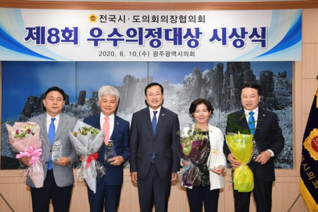 ½Ã»ó½ÄÀº 10ÀÏ(¼ö) ±¤ÁÖ±¤¿ª½ÃÀÇȸ ¿¸°½Ã¹ÎȦ¿¡¼ ÀÚüÀûÀ¸·Î ¿·È´Ù.¡®¿ì¼öÀÇÁ¤ ´ë»ó¡¯Àº Àü±¹ ½ÃµµÀÇȸ ÀÇ¿øµéÀÌ ÆîÄ£ ¿ì¼öÇÑ ÀÇÁ¤È°µ¿À» ¹ß±¼․ÀüÆÄÇÏ¿© ÀÇÁ¤ ¿ª·®À» ³ôÀ̱â À§ÇØ Á¦Á¤µÈ »óÀÌ´Ù. 1³â µ¿¾È ÁÖ¹ÎÀÇ »îÀÇ Áú Çâ»ó°ú ½ÃÁ¤ Çö¾È¿¡ ´ëÇÑ ÁýÇàºÎ °ßÁ¦ µî Áö¿ª ¹ßÀü¿¡ ±â¿©ÇÑ °øÀÌ Å« ÀÇ¿ø¿¡°Ô ¼ö¿©µÈ´Ù.