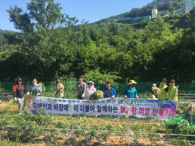 ¹ÌÆòµ¿ Çູ´õÇÔ ¸¶À»°øµ¿Ã¼´Â ¡®Àå¾ÖÀΰú ºñÀå¾ÖÀÎÀÌ ÇÔ²²ÇÏ´Â ÇູÇÑ ¸¶À»¸¸µé±â¡¯ »ç¾÷À¸·Î Àå¾ÖÀΰú ºñÀå¾ÖÀÎÀÌ ÇÔ²² ÅÔ¹çÀ» °¡²Ù°í, ¼öÈ®µÈ ³óÀÛ¹°À» ³ª´©°í ÀÖ´Ù. Àå¾ÖÀΰú ºñÀå¾ÖÀÎÀÇ À庮À» ÇØ¼ÒÇϰí Â÷º° ¾ø´Â ºÐÀ§±â Á¶¼ºÀÌ ¸ñÀûÀÌ´Ù.