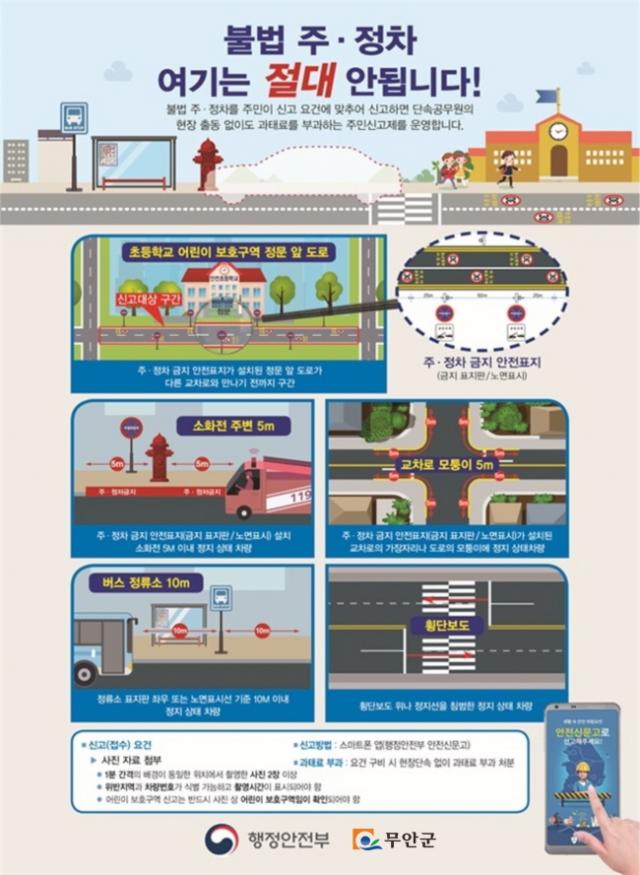 ºÒ¹ýÁÖÁ¤Â÷ ÁֹνŰíÁ¦´Â ½º¸¶Æ®Æù ¾Û(ÇàÁ¤¾ÈÀüºÎ ¾ÈÀü½Å¹®°í)¸¦ ÅëÇØ ºÒ¹ýÁÖÁ¤Â÷µÈ Â÷·®µéÀ» ½Å°íÇÏ´Â Á¦µµ·Î ´ã´ç°ø¹«¿øÀÇ ÇöÀå Ã⵿ ¾øÀÌ °úÅ·Ḧ ºÎ°úÇÑ´Ù. ´Ù¸¸, µ¿ÀÏÇÑ À§Ä¡¿¡¼ À§¹ÝÁö¿ª, Â÷·®¹øÈ£, ÃÔ¿µ½Ã°£ÀÌ ½Äº° °¡´ÉÇϵµ·Ï ½Å°íÇØ¾ß ÇÑ´Ù.