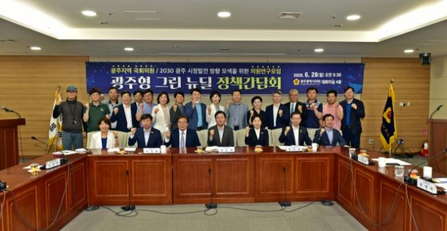 À̳¯ Âü¼®ÇÑ ½ÃÀÇ¿øµéÀº ±¤ÁÖÁö¿ª ±¹È¸ÀÇ¿øµé¿¡°Ô ¡®ÀÇ¿ø¿¬±¸¸ðÀÓÀÇ ÃëÁö¡¯¿Í ÇÔ²² Áö±Ý±îÁö ³íÀÇÇÑ ¡®±¤ÁÖÇü ±×¸° ´ºµô »ç¾÷ Á¤Ã¥(¿¡³ÊÁö ºÐ¾ß µî ÃÑ10°³ ºÐ¾ß)¡¯À» ºÐ¾ßº°·Î ¹ßÇ¥ÇÑ ÈÄ ³»³âµµ Á¤ºÎ ¿¹»ê¿¡ ¹Ý¿µµÉ ¼ö ÀÖµµ·Ï ±¹È¸Â÷¿ø¿¡¼ ÈûÀ» ½Ç¾îÁÖ½Ç °ÍÀ» °ÇÀÇÇß´Ù.