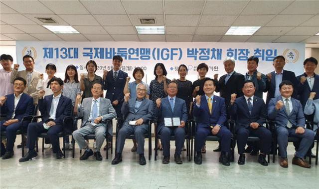 ±¹Á¦¹ÙµÏ¿¬¸Í ȸÀå ÃëÀÓ½ÄÀº 29ÀÏ ¿ÀÀü 11½Ã Çѱ¹±â¿ø 2Ãþ ´ëȸÀå¿¡¼ ÀÓäÁ¤ Çѱ¹±â¿ø ÃÑÀç, ¾çÀçÈ£ »ç¹«ÃÑÀå, ÀÌâȣ ÀÌ»ç, ¾ç»ó±¹ ÀÌ»ç, ¿©¼ö°ÅºÏ¼±ÆÀ ÀÌÇö¿í °¨µ¶ µî ÇÁ·Î±â»çµéÀÌ ´ë°Å Âü¼®ÇÑ °¡¿îµ¥ °³ÃֵƴÙ.