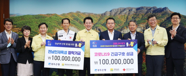 ±è¿µ·Ï Àü¶ó³²µµÁö»ç´Â ¡°Àü³²ÀÇ Áß¼Ò±â¾÷°ú ¼Ò»ó°øÀÎ µîÀ» À§ÇØ Å« ¿ªÇÒÀ» Çϰí ÀÖ´Â ±¤ÁÖÀºÇàÀÌ ¡®Äڷγª19¡¯ ±Øº¹°ú ÀÎÀçÀ°¼ºÀ» À§ÇÑ ¼º±ÝÀ» ±âÅ¹ÇØÁà ¸Å¿ì °¨»çÇÏ´Ù¸ç, Àü¶ó³²µµ¿Í µµ¹ÎµéÀÌ ¾î·Á¿î »óȲÀ» ÇÔ²² ±Øº¹Çϴµ¥ Å« µµ¿òÀÌ µÉ °ÍÀÌ´Ù¡±°í ¸»Çß´Ù.