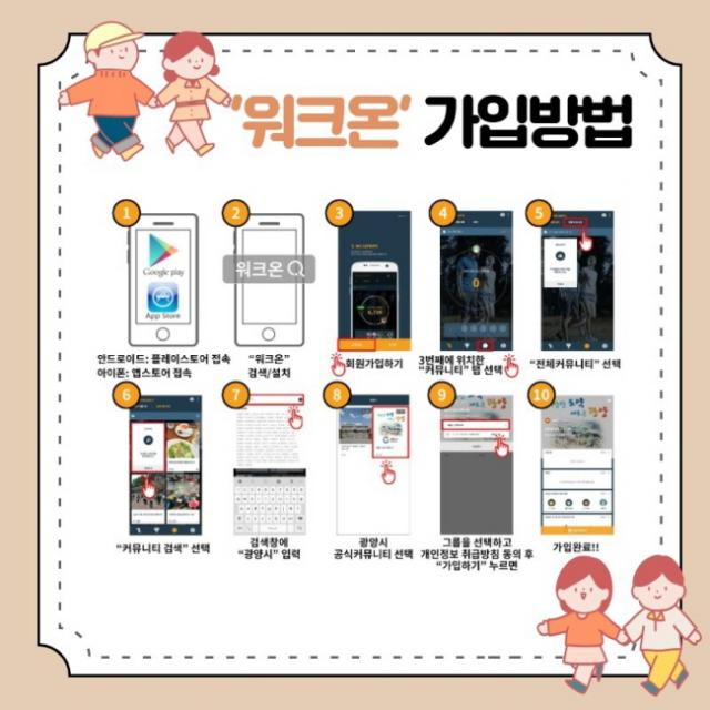 Âü¿© ¹æ¹ýÀº ¸ð¹ÙÀÏ ¾Û ¿öÅ©¿Â ¼³Ä¡ ÈÄ ±¤¾ç½Ã °ø½Ä Ä¿¹Â´ÏƼ(¼Ò±×·ì À¾¸éµ¿ ¼±ÅÃ)¿¡ °¡ÀÔÇÏ°í ±¤¾ç½Ã 縰Áö¿¡¼ ¡®½ÃÀÛÇϱ⡯¸¦ ´©¸¥ ÈÄ ÈÞ´ëÆùÀ» °¡Áö°í °ÉÀ¸¸é µÈ´Ù. ´Ü, °ÉÀ½¼ö´Â 1ÀÏ ÃÖ´ë 1¸¸ 5õ º¸·Î Á¦ÇѵȴÙ.
