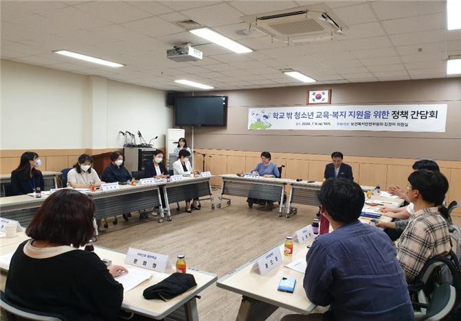 À̳¯ °£´ãȸ¸¦ ÁÖ°üÇÑ º¸°Çº¹Áö¾ÈÀüÀ§¿øÈ¸ ¾ç¿µ½Ä À§¿øÀåÀº Çб³ ¹Û û¼Ò³âµé¿¡°Ô ²ÙÁØÇÑ °ü½ÉÀ» °¡ÁöÀ» °¡Áö°Ú´Ù´Â ¾à¼ÓÀ» Çϸç, ¾ÕÀ¸·Î µµÀÇȸ º¸°Çº¹Áö¾ÈÀüÀ§¿øÈ¸¿¡¼ Çб³ ¹Û û¼Ò³â °ü·ÃÇÏ¿© °£´ãȸ¿Í Åä·Ðȸ ÁøÇàÇØ ³ª°¥ ¿¹Á¤À̸ç, Áö¼ÓÀûÀ¸·Î µµ¿Í µµ±³À°Ã» »ç¾÷ µî¿¡ Çб³ ¹Û û¼Ò³â Áö¿ø ³»¿ëÀÌ ½ÇÁúÀûÀ¸·Î Æ÷Ç﵃ ¼ö ÀÖµµ·Ï ³ë·ÂÇÒ °èȹÀÓÀ» ¹àÇû´Ù.