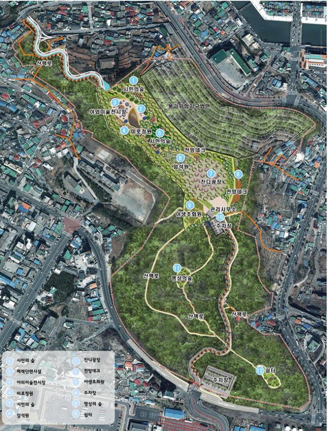 2022³â 6¿ù ¿Ï°øÀ» ¸ñÇ¥·Î 107¾ï ¿øÀ» µé¿© 4¸¸ 2,480§³¿¡ ¸í»óÀÇ ½£ µî °ø¿øÀ» Á¶¼ºÇϰí, ³²»êºÏ1±æ¿¡¼ °ø¿øÀ¸·Î ÁøÀÔÇÒ ¼ö ÀÖ´Â 291mÀÇ µµ·Î °³¼³°ú, 1,822mÀÇ »êÃ¥·Î 16°÷À» °³¼³ÇÒ °èȹÀÌ´Ù. Àܵð±¤Àå°ú Àü¸Áµ¥Å©, ¾ß¿Ü¹Ì¼úÀü½ÃÀå°ú ¾Ï¼®¿ø µîµµ µé¾î¼±´Ù.