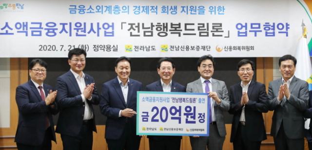 À̹ø Çù¾àÀ¸·Î Àü¶ó³²µµ´Â 20¾ï ¿øÀ» Àü³²½Å¿ëº¸ÁõÀç´Ü¿¡ Ã⿬Çϰí, Àü³²½Å¿ëº¸ÁõÀç´ÜÀº ¼Ò¾×±ÝÀ¶Áö¿øÀÇ ¿øÈ°ÇÑ »ç¾÷ÃßÁøÀ» À§ÇØ Àü¹®±â°üÀÎ ½Å¿ëȸº¹À§¿øÈ¸¿¡ ¾÷¹«¸¦ À§Å¹ÇÏ°Ô µÈ´Ù.