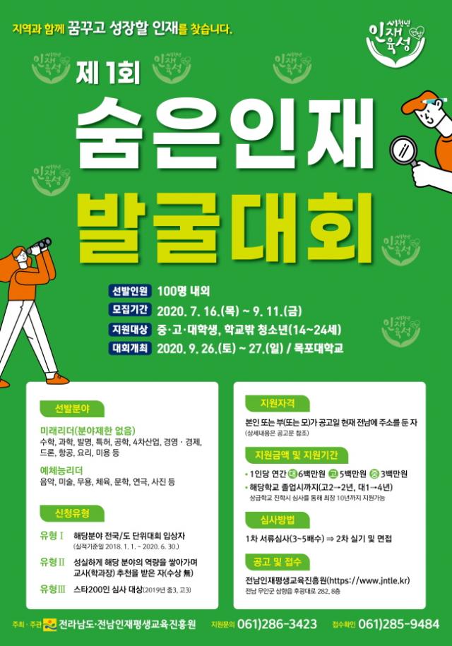 ÇÑÆí, Àü¶ó³²µµ´Â »õõ³â ÀÎÀçÀ°¼º ÇÁ·ÎÁ§Æ®ÀÇ ÀÏȯÀÎ ¡®Á¦1ȸ ¼ûÀºÀÎÀç ¹ß±¼´ëȸ¡¯¸¦ ¸í½Ç»óºÎÇÑ ÀÎÀç¿Ã¸²ÇÈÀ¸·Î ¹ßÀü½ÃŰ°Ú´Ù´Â ¹æÄ§ÀÌ´Ù. »õõ³â ÀÎÀçÀ°¼º ÇÁ·ÎÁ§Æ®´Â ¡®Áö¿ª°ú ÇÔ²² ²Þ²Ù°í ¼ºÀåÇÒ À¸¶äÀÎÀ硯 À°¼ºÀ» ¸ñÇ¥·Î 3°³ ºÐ¾ß 12°³ ÁßÁ¡»ç¾÷À» ÃßÁøÇÑ Àü¶ó³²µµ ¹Î¼±7±â ºê·£µå ½ÃÃ¥ÀÌ´Ù.