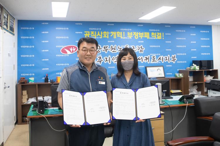 Àü±¹°ø¹«¿ø³ëµ¿Á¶ÇÕ ¼±ÍÆ÷½ÃÁöºÎ Àå½Â¿î ÁöºÎÀåÀº ¡°¾÷¹«Çù¾àÀ» ü°áÇÔ¿¡ µû¶ó Á¶ÇÕ¿øÀº 10%ÀÇ ÇÒÀÎµÈ °¡°ÝÀ¸·Î ÀÌ Ä«Æä¸¦ ÀÌ¿ëÇÒ ¼ö ÀÖ´Ù.¡±¸é¼ ¡°¹«¾ùº¸´Ù °øÁ÷ÀÚ¿Í »çȸÀû±â¾÷ÀÌ »ó»ýÀÇ ±æÀ» ¿¾ú´Ù´Â µ¥¿¡ ÀÇÀǰ¡ ÀÖ´Ù°í ÇÒ ¼ö ÀÖ´Ù.¡±¸é¼ Àû±ØÀûÀÎ Âü¿©¸¦ ¹Ù·¨´Ù.