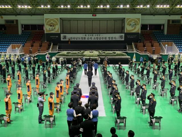 ÇÑÆí, ±è¿µ·Ï Àü¶ó³²µµÁö»ç´Â ¡°¿ë°¨Çß´ø °í ±è±¹È¯ ¼Ò¹æÀåÀÇ Çå½Å°ú Èñ»ýÀÌ ÇêµÇÁö ¾Êµµ·Ï µµ¹Î°ú ¼Ò¹æ°üµéÀÇ ¾ÈÀü, Çູ¿¡ ´õ¿í Ã¥ÀÓ°¨À» °®°Ú´Ù¡±¸ç ¡°°¡Á·ºÐµéÀÌ ½½ÇÄÀ» µó°í Àü³²¼Ò¹æ°¡Á·ÀÓÀ» ÀÚ¶û½º·´°Ô ¿©±æ ¼ö ÀÖµµ·Ï º¸ÈÆ¿¡µµ ÃÖ¼±À» ´ÙÇϰڴ١±°í ¸»Çß´Ù
