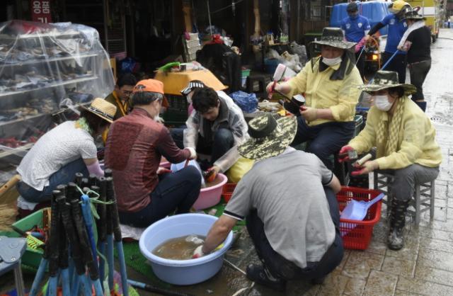 ÇàÁ¤±¸¿ªÀ» ¶°³ª ÇÇÇØ°¡ ½É°¢Çß´ø ±¸·Ê5ÀÏÀåÀ» ãÀº ¼øÃµ½ÃÀÇȸ ÀÇ¿øµéÀº ÁöºØ±îÁö ¹°ÀÌ Â÷¿Ã¶ú´ø »óÁ¡¿¡¼ ¹°°ÇÀ» ²¨³» ÀÏÀÏÀÌ ¾Ä°í ¾²·¹±â¸¦ Ä¡¿ì´Â µî º¹±¸¿¡ ±¸½½¶¡À» Èê·È´Ù.