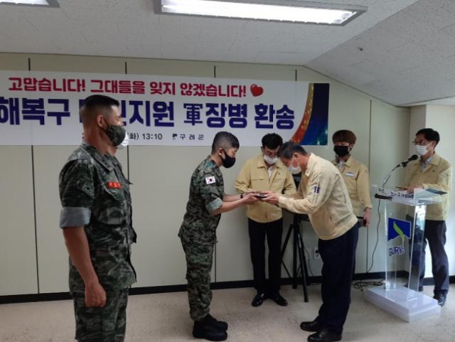 À̳¯ Àü¶ó³²µµ´Â ±¸·Ê °ø¼³¿îµ¿Àå, °î¼º±ºÃ»¿¡¼ È£¿ì ÇÇÇØ º¹±¸¸¦ À§ÇØ ´ë±¸¡¤°æºÏ․ÀüºÏ Áö¿ª¿¡¼ ´Þ·Á¿Í Çå½ÅÀûÀ¸·Î ºÀ»çÇÑ À°±º Á¦50»ç´Ü 1°³ ºÎ´ë, 201Ư°ø 1°³ ºÎ´ë, ÇØº´ 1»ç´Ü 1°³ ºÎ´ë, 7°ø¼öƯÀü¿©´Ü 4°³ ºÎ´ë µî 7°³ ºÎ´ë¿¡ µµ¹ÎµéÀÇ ¸¶À½À» ´ãÀº °¨»çÆÐ¸¦ Àü´ÞÇß´Ù.