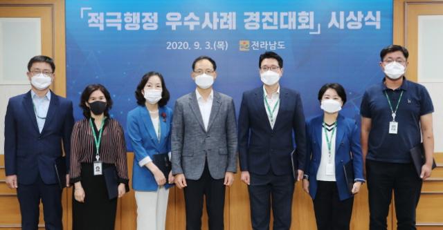Àü¶ó³²µµ´Â °æÁø´ëȸ ¼ö»óÀÚ¿¡°Ô µµÁö»ç »óÀå°ú »ó±ÝÀ» ¼ö¿©Çϰí, Àû±ØÇàÁ¤Áö¿øÀ§¿øÈ¸ ÀǰáÀ» °ÅÃÄ Àû±ØÇàÁ¤ ¿ì¼ö°ø¹«¿ø¿¡°Ô ¼º°ú±Þ ÃÖ°íµî±Þ µî ÆÄ°ÝÀûÀÎ Àλç Àμ¾Æ¼ºê¸¦ ºÎ¿©Å°·Î Çß´Ù.