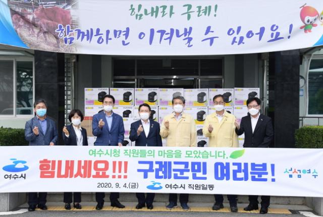 7ÀÏ ¿©¼ö½Ã¿¡ µû¸£¸é Áö³ 4ÀÏ ±Ç¿ÀºÀ ¿©¼ö½ÃÀåÀÌ Á÷¿ø ´ëÇ¥·Î ±¸·Ê±ºÃ»°ú °î¼º±ºÃ»À» ¹æ¹®ÇØ ÃÑ 2,000¸¸ ¿ø »ó´çÀÇ °¡ÀüÁ¦Ç°À» Àü´ÞÇß´Ù.