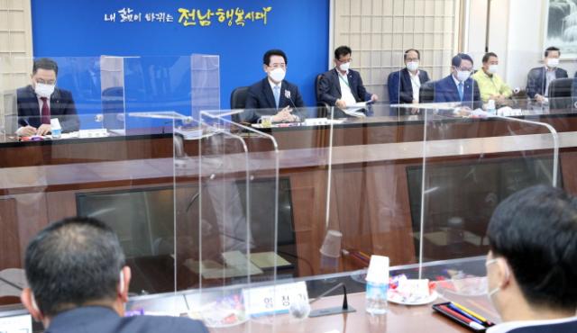 À̳¯ µµÃ» ¼ÀçÇʽǿ¡¼ ¿¸° °£´ãȸ¿¡´Â ÇØ³²¡¤¿Ïµµ¡¤Áøµµ Áö¿ª ³óÇù Á¶ÇÕÀå°ú ±è¼®±â ³óÇù Àü³²Áö¿ªº»ºÎÀå µî 24¸íÀÌ Âü¼®Çß´Ù. À̵éÀº Àü³²µµ ³óÁ¤ºÐ¾ß Áֿ伺°ú¿Í ÇâÈİèȹÀ» µè°í Àü³²³ó¾÷ÀÌ ³ª¾Æ°¡¾ßÇÒ ¹ßÀü ¹æ¾È¿¡ ´ëÇØ ³íÀÇÇß´Ù.