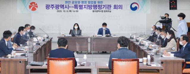 ȸÀÇ´Â ¿ÃÇØ ±¤ÁÖ½Ã¿Í Æ¯º°Áö¹æÇàÁ¤±â°üÀÌ °øµ¿À¸·Î ÃßÁøÇØ ¿Â Çù¾÷°úÁ¦ ÃßÁø»óȲÀ» Á¡°ËÇϰí ÇâÈÄ ±â°ü °£ Çö¾È¿¡ ´ëÇØ »óÈ£ ÀǰßÀ» ±³È¯ÇÏ´Â ¼ø¼·Î ÁøÇàµÆ´Ù.