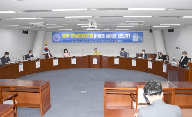 Åä·Ðȸ¸¦ ÁÖÃÖÇÑ ±èÀÍÁÖ ½ÃÀÇ¿øÀº ¡°±¤ÁÖ¡¤Àü³² ÇàÁ¤ÅëÇÕÀº ½Ã¡¤µµ¹ÎÀÇ Èñ¸ÁÀÌÀÚ ¹Ì·¡°¡ ¿¸®´Â ±æÀ̶ó¸é¼ Áö¹æ ¼Ò¸êÀ» ´ëºñÇÑ ÃÖ°íÀÇ ¹é½ÅÀÎ ¸¸Å Åä·Ðȸ ÀÌÈÄ¿¡µµ Áö¼ÓÀûÀÎ ³íÀǸ¦ ÅëÇØ ½Ã¡¤µµ ÅëÇÕÀ» ÀÌ·ç¾î ³»´Â ±â¹ÝÀ» ±¸ÃàÇϴµ¥ ÀÏÁ¶ÇÏ°Ú´Ù°í¡± Çß´Ù. ÇÑÆí Åä·Ðȸ¸¦ °®Àº ±èÀÇ¿øÀº ±¤ÁÖ¡¤Àü³² ÅëÇÕ¿¡ ´ëÇÑ ±»Àº ÀÇÁö¸¦ º¸¿©ÁÖ¾ú´Ù.