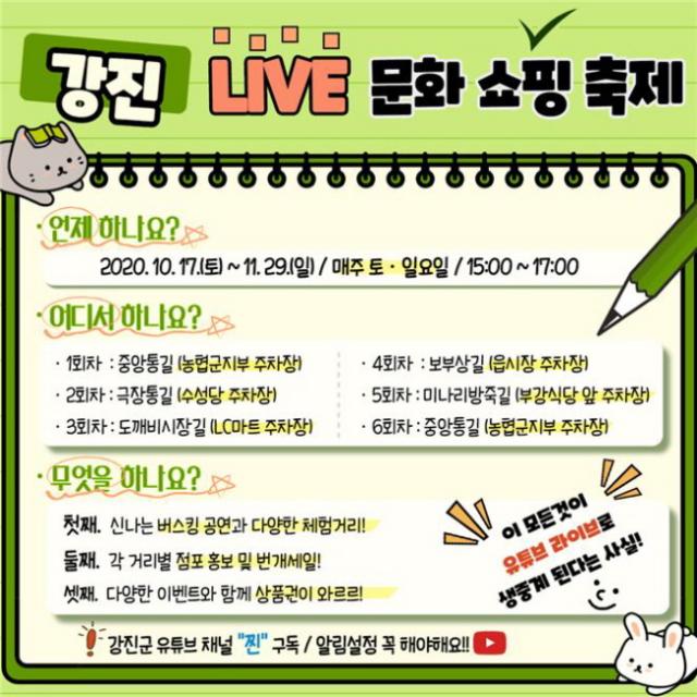 ÇÑÆí, ¡®¶óÀÌºê ¹®È¼îÇÎ ÃàÁ¦¡¯´Â Áß¾ÓÅë±æ ³óÇù±ºÁöºÎ ÁÖÂ÷Àå¿¡¼ ½ÃÀÛÇØ ±ØÀåÅë±æ ¼ö¼º´ç ¿· ÁÖÂ÷Àå, µµ±úºñ½ÃÀ屿 LC¸¶Æ® ¾Õ ÁÖÂ÷Àå, º¸ºÎ»ó±æ À¾½ÃÀå ÁÖÂ÷Àå, ¹Ì³ª¸®¹æÁ×±æ ³²¹® ÁÖÂ÷Àå ¼øÀ¸·Î 5°³ °Å¸®¸¦ ¼øÈ¸Çϸç ÁøÇàµÇ¸ç, °Áø±º À¯Æ©ºê ä³ÎÀ» ±¸µ¶ÇÏ¸é ¶óÀÌºê ¹æ¼Û ½Ã ¾Ë¸²ÀÌ ½º¸¶Æ®Æù¿¡ Àü´ÞµÅ ¶óÀÌºê ¹æ¼ÛÀ» ³õÄ¡Áö ¾Ê°í ½ÃûÇÒ ¼ö ÀÖ´Ù.