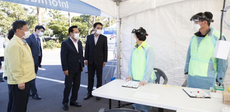 Áö³ 19ÀÏ Á³²¼ö Á¦ÁÖÆ¯º°ÀÚÄ¡µµÀÇȸ ÀÇÀå°ú ¾ç¿µ½Ä º¸°Çº¹Áö¾ÈÀüÀ§¿øÈ¸ À§¿øÀåÀº Á¦ÁÖµµÃ», Á¦ÁÖ±¹Á¦°øÇ×, Á¦ÁÖº¸°Çȯ°æ¿¬±¸¿ø, Á¦ÁÖº¸°Ç¼Ò µî Äڷγª-19 ¹æ¿ªÇöÀåÀ» ã¾Æ °ü°èÀÚ¸¦ °Ý·ÁÇß´Ù.