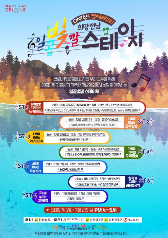 11¿ù¿¡´Â ¡®°¡À»ºû °¡µæÇÑ ¿À»öÇâäÅ¡¯À» ÁÖÁ¦·Î ±¸·Ê ¼½Ãõ°ú º¸¼º ´Ù¿ø¿¡¼ °ø¿¬ÀÌ ¿¸®¸ç, ÇØ³² ³ì¿ì´ç°ú ´ã¾ç ½Ä¿µÁ¤¿¡¼´Â °íÅÃÀÇ ¾Æ¸§´Ù¿î dz°æ°ú ÀçÁî, Ŭ·¡½ÄÀÌ ¾î¿ì·¯Áø »ö´Ù¸¥ °ø¿¬ÀÌ ¼±ºÉ ¿¹Á¤ÀÌ´Ù.