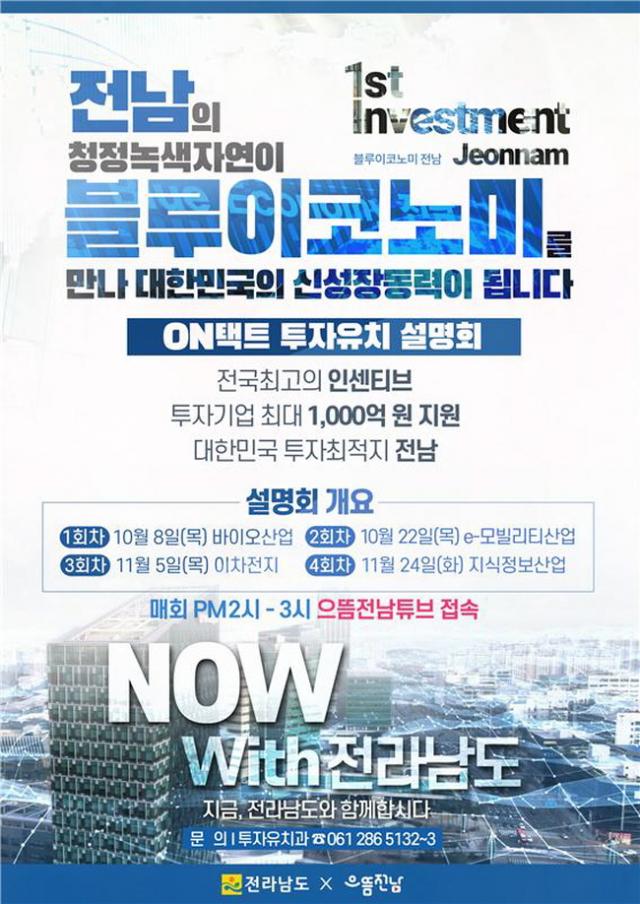 ÇÑÆí, ÃÑ 4ȸ ±âȹµÈ Àü¶ó³²µµ ¿ÂÅÃÆ® ÅõÀÚÀ¯Ä¡¼³¸íȸ´Â 11¿ù 5Àϰú 24ÀÏ¿¡µµ °¢°¢ ÀÌÂ÷ÀüÁö¿Í Áö½ÄÁ¤º¸»ê¾÷À» ÁÖÁ¦·Î °èȹµÅ ÀÖ´Ù.