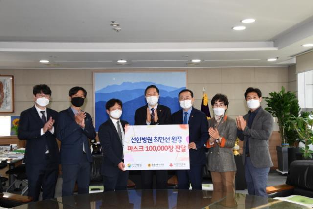 ÀÌ ³¯ ±âʽÄÀº ±èµ¿Âù Àü¹Ý±â ±¤ÁÖ½ÃÀÇȸ ÀÇÀåÀÇ ÁÖ¼±À¸·Î ¸¶·ÃµÇ¾úÀ¸¸ç ¼±ÇѺ´¿øÀº Äڷγª19 »çÅÂÀÇ Àå±âÈ·Î ÀÎÇØ ´õ¿í ¾î·Á¿òÀ» °Þ°í ÀÖ´Â Ãë¾à°èÃþ ¾Æµ¿µéÀ» °¨¿°Áõ »óȲÀ¸·ÎºÎÅÍ º¸È£Çϱâ À§ÇØ ¸¶½ºÅ© 10¸¸ÀåÀ» »çȸº¹Áö°øµ¿¸ð±Ýȸ¿¡ ÁöÁ¤±âŹ Çß´Ù.