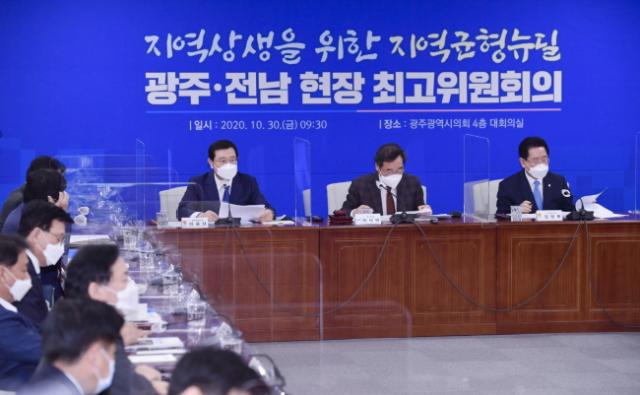 À̳¯ ´õºÒ¾î¹ÎÁÖ´ç ±¤ÁÖ․Àü³² ÇöÀåÃÖ°íÀ§¿øÈ¸ÀÇ´Â Áö¿ª±ÕÇü ´ºµôÀ» ÁÖÁ¦·Î °³ÃÖÇÑ Ã¹ Àü±¹ ¼øÈ¸ ȸÀÇ·Î À̳«¿¬ ´ç ´ëÇ¥, ±èÁ¾¹Î¡¤¿°Å¿µ¡¤½Åµ¿±Ù¡¤¾çÇâÀÚ¡¤¹ÚÈ«¹è ÃÖ°íÀ§¿ø, ¹Ú±¤¿Â »ç¹«ÃÑÀå µî ´ç ÁöµµºÎ°¡ ÃÑ Ã⵿Çß´Ù. ÀÌ ½ÃÀåÀº ȸÀÇ¿¡¼ ¡°Çѱ¹ÆÇ ´ºµôÀ» Áö¿ªÀ¸·Î È®ÀåÇØ »õ·Î¿î ´ëÇѹα¹ÀÇ ¹Ì·¡¹ßÀü Àü·«À» Â¥´Â Áö¿ª±ÕÇü ´ºµô¿¡ Àû±Ø È£ÀÀÇØ ±¤ÁÖÇü 3´ë ´ºµôÀ» ÀÇ¿åÀûÀ¸·Î ÃßÁøÇϰí ÀÖ´Ù¡±¸ç, ¡°±¤ÁÖÇü 3´ë ´ºµôÀº ÀΰøÁö´ÉÀ» ±â¹ÝÀ¸·Î 150¸¸ ±¤ÁֽùεéÀÌ Àû±Ø Âü¿©ÇÏ´Â Á¡ÀÌ ´Ù¸¥ Áö¿ªÀÇ ´ºµôÁ¤Ã¥µé°ú ´Ù¸£´Ù¡±°í ±¤ÁÖÇü ´ºµôÀÇ Â÷ÀÌÁ¡À» °Á¶Çß´Ù.