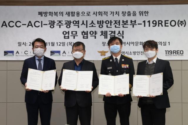 ±¤ÁÖ±¤¿ª½Ã ¼Ò¹æ¾ÈÀüº»ºÎ´Â 12ÀÏ ±¹¸³¾Æ½Ã¾Æ¹®ÈÀü´ç¿¡¼ Æó¹æÈº¹À» ÀçȰ¿ëÇØ »õ »óǰÀ¸·Î Á¦ÀÛÇÏ´Â 119REO¢ß¿Í ±¹¸³¾Æ½Ã¾Æ¹®ÈÀü´ç, ¾Æ½Ã¾Æ¹®È¿ø°ú Æó¹æÈº¹ Ȱ¿ë °ü·Ã ¾÷¹«Çù¾àÀ» ü°áÇß´Ù.