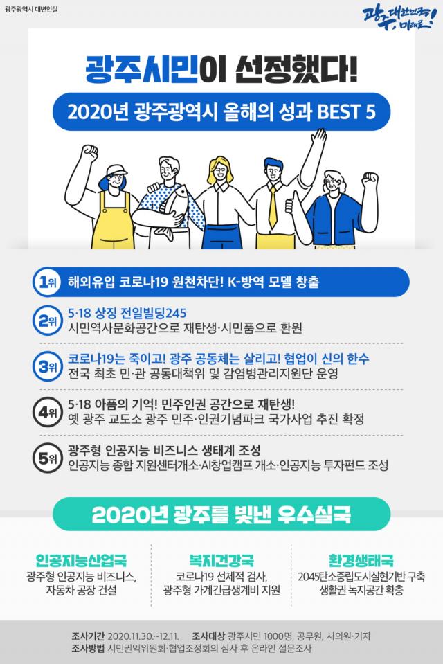 Á¤ÁÖÇü ±¤Áֽà Æò°¡´ã´ç°üÀº ¡°Äڷγª19 °ü·Ã Á¤Ã¥°ú 5¡¤18¹ÎÁÖȿ°ú °ü·ÃµÈ »ç¾÷ µî ½Ã¹ÎµéÀÇ °ü½É°ú ±â´ë°¡ Å« »ç¾÷ÀÌ ¿ÃÇØ º£½ºÆ® »ç¾÷À¸·Î ¼±Á¤µÆ´Ù¡±¸ç ¡°¿ÃÇØ ¼º°ú¸¦ ¹ßÆÇ»ï¾Æ ³»³â¿¡´Â Äڷγª19 Àç³»óȲ ±Øº¹°ú Áö¿ª°æÁ¦ Ȱ¼ºÈ¸¦ À§ÇØ ÁÖ¿ä Çٽɻç¾÷ÀÇ ¼º°ú¸¦ âÃâÇÏ´Â µ¥ ¿ÂÈûÀ» ½ñÀ» °èȹÀÌ´Ù¡±°í ¸»Çß´Ù.