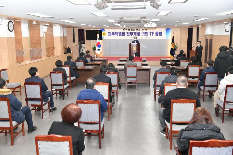 ¡®µµ¹Îº¹¸® ÁõÁøÀ» À§ÇÑ Á¦ÁÖÆ¯º°¹ý ÀüºÎ°³Á¤ ÀÇȸ T/F¡¯´Â 2021³â 1¿ù7ÀϺÎÅÍ 3¿ù ¸»±îÁö ÇѽÃÀûÀ¸·Î ¿î¿µµÈ´Ù. ÀÌ ±â°£µ¿¾È °¢ À§¿øÈ¸º° Á¦ÁÖÆ¯º°¹ý °³Á¤ °úÁ¦¸¦ µµÃâÇϰí, ÀÇȸ ÀÚü º¸°íȸ, Á¦ÁÖµµ¿ÍÀÇ ÇùÀÇ, Á¤Á¡»çÇ׿¡ ´ëÇÑ °øÃ»È¸ ¶Ç´Â ¿©·ÐÁ¶»ç ½Ç½Ã, ÇÊ¿äÇÑ °æ¿ì Á¦ÁÖÆ¯º°ÀÚÄ¡µµÀÇȸ¿Í Çù¾àÀ» ¸Î°í ÀÖ´Â Çѱ¹Áö¹æÀÚÄ¡ÇÐȸÀÇ ÀÚ¹® ¹× °øµ¿ Åä·Ðȸ µîÀ» ÃßÁøÇÏ¿© Á¤Ã¥¿Ï¼ºµµ¸¦ ³ôÀÏ ¿¹Á¤ÀÌ´Ù.
