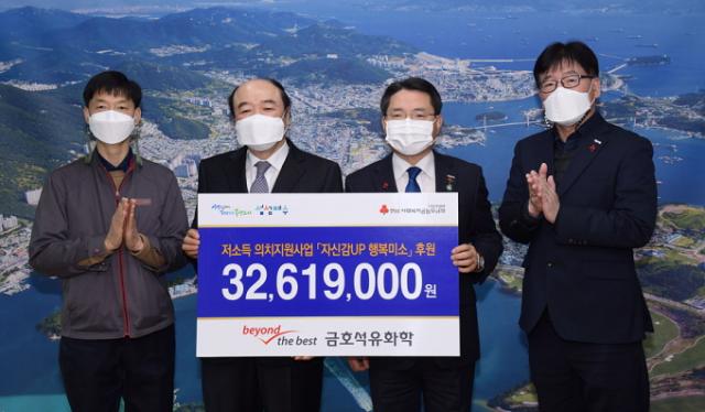 ÇÑÆí, ±ÝÈ£¼®À¯ÈÇÐÀº Áö³ 2016³âºÎÅÍ Àú¼Òµæ º¹ÁöÀ§±â°¡±¸ÀÇ ¹«·áÀÇÄ¡Áö¿ø »ç¾÷À» ÃßÁøÇØ ±â¾÷ÀÇ ºê·£µå »ç¾÷À¸·Î ÀÚ¸®¸Å±èÇϰí ÀÖÀ¸¸ç, ÇöÀç±îÁö 93¸íÀÇ ´ë»óÀÚ¿¡°Ô 9õ 2¹é¿©¸¸ ¿øÀ» Áö¿øÇß´Ù. ¶ÇÇÑ Àú¼ÒµæÃþ ÀǷẸÇè·á ´ë³³ ¹× »ýȰºñ Áö¿ø, º¹Áö½Ã¼³ Áö¿ø»ç¾÷ µî ´Ù¾çÇÑ ¿µ¿ªÀÇ »çȸ°øÇå»ç¾÷°ú ºÀ»çȰµ¿À» ÆîÄ¡°í ÀÖ´Ù.
