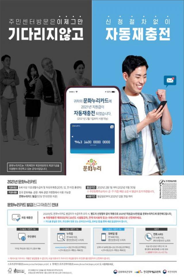 ÀÚµ¿ÀçÃæÀü ´ë»ó È®ÀÎÀº ¹®È´©¸®Ä«µå ´©¸®Áý °øÁö»çÇ׿¡¼ È®ÀÎÇÒ ¼ö ÀÖ´Ù. ÀÚµ¿ÀçÃæÀü ±â°£Àº 28ÀϺÎÅÍ 29ÀϱîÁöÀ̸ç, ÃæÀüÀÌ ¿Ï·áµÇ¸é ´ë»óÀÚ ÈÞ´ëÀüÈ·Î ¹®ÀÚ¸Þ½ÃÁö°¡ ¹ß¼ÛµÈ´Ù. ¡Ø ¹®È´©¸®Ä«µå ¹Ù·Î °¡±â : www.mnuri.kr