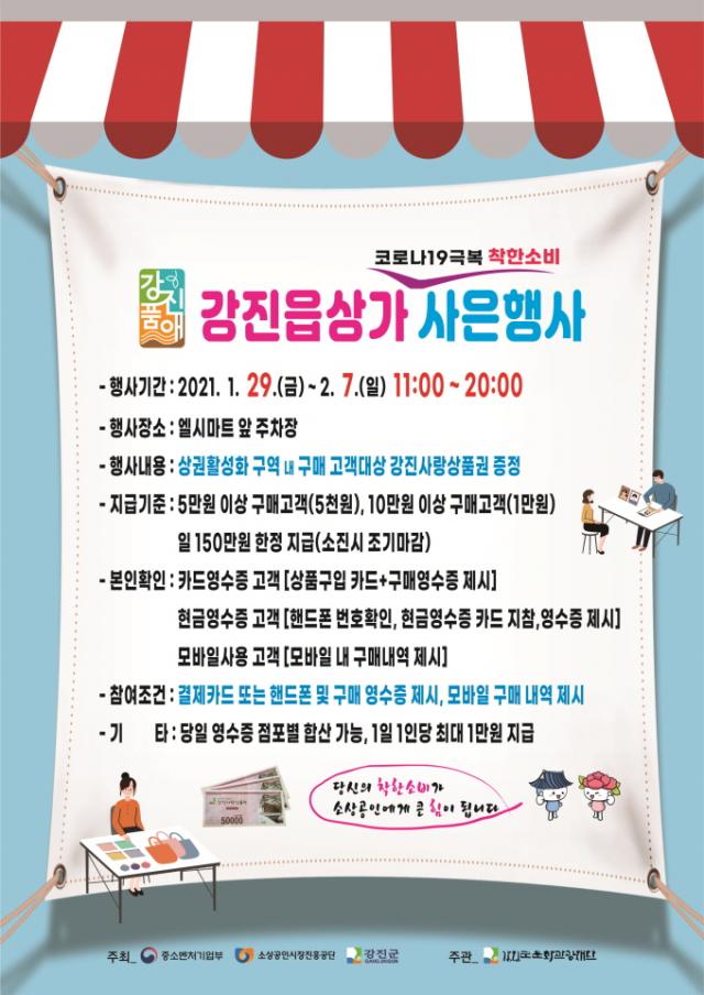 ¿À´Â 1¿ù 29ÀϺÎÅÍ 2¿ù 7ÀϱîÁö ÃÑ 10ÀÏ µ¿¾È LC¸¶Æ® ¾Õ ÁÖÂ÷Àå¿¡¼ ÁøÇàµÇ´Â ÂøÇѼҺñ »çÀºÇà»ç´Â °ÁøÀ¾ »ó±ÇȰ¼ºÈ ±¸¿ª ³» »ó°¡¿¡¼ 5¸¸¿ø ÀÌ»ó ±¸¸ÅÇÑ °í°´¿¡°Ô´Â °Áø»ç¶û»óǰ±Ç 5õ¿ø, 10¸¸¿ø ÀÌ»ó ±¸¸Å °í°´¿¡°Ô´Â °Áø»ç¶û»óǰ±Ç 1¸¸¿øÀ» Áö±ÞÇÑ´Ù. »óǰ±ÇÀº ÀÏ 150¸¸ ¿øÀ» ¼±Âø¼øÀ¸·Î Áö±ÞÇϸç, »óǰ±ÇÀÌ ¼ÒÁøµÇ¸é Á¶±â ¸¶°¨µÈ´Ù.