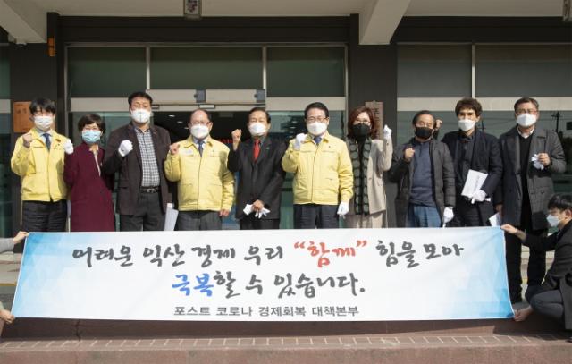 ÀÍ»ê½Ã´Â 5ÀÏ ½Ãû »óȲ½Ç¿¡¼ ¹Î¡¤°üÀÌ Âü¿©Çϴ¡®Æ÷½ºÆ® Äڷγª °æÁ¦È¸º¹ ´ëÃ¥º»ºÎ¡¯¸¦ ±¸¼ºÇÏ°í ¹ß´ë½ÄÀ» °³ÃÖÇß´Ù. À̳¯ ¹ß´ë½ÄÀº ¹Î¡¤°ü »ó°ß·Ê¿¡ À̾î Áö¿ª °æÁ¦ÇöȲ¿¡ ´ëÇÑ °£´ãȸ, ´ëÃ¥º»ºÎ ÇöÆÇ Á¦¸·½Ä ¼øÀ¸·Î ÁøÇàµÆ´Ù.