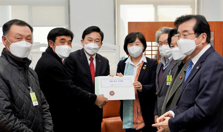 ¶ÇÇÑ, ¿ø Áö»ç¿Í µµÀÇȸ ¹× À¯Á·È¸ Âü¼®ÀÚ ¸ðµÎ ¼ À§¿øÀå¿¡°Ô ´ëÇѹα¹ ½Ã¡¤µµÁö»çÇùÀÇȸ°¡ 8ÀÏ ¹ßÇ¥ÇÑ ¡®4¡¤3Ưº°¹ý °³Á¤ Ã˱¸¸¦ À§ÇÑ °øµ¿°ÇÀǹ®¡¯À» Àü´ÞÇß´Ù.