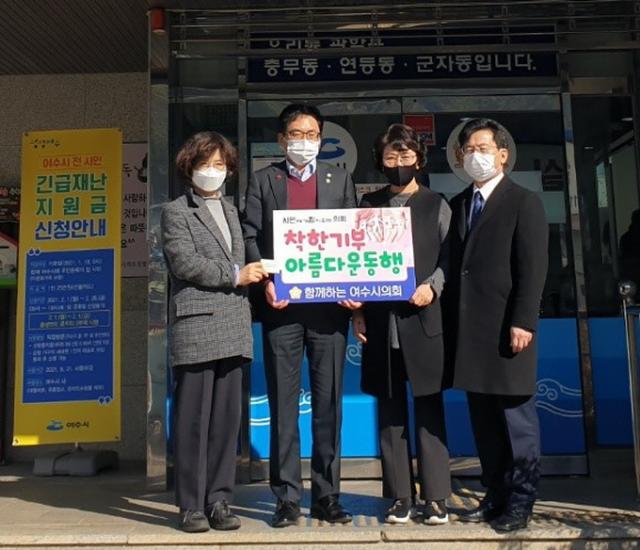 Äڷγª19·Î ¾î·Á¿òÀ» °Þ°í ÀÖ´Â ½Ã¹ÎµéÀÇ °íÅëÀ» ÇÔ²² ³ª´©°í ħüµÈ Áö¿ª°æÁ¦ Ȱ¼ºÈ¸¦ À§ÇØ ¿©¼ö½ÃÀÇȸ ÀÇ¿øµéºÎÅÍ ³ª´® ¿îµ¿¿¡ ¼Ö¼±ÇÏÀÚ´Â ÃëÁö·Î ÃßÁøÇß´Ù.